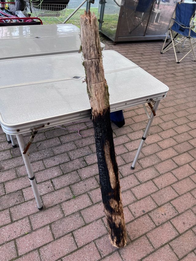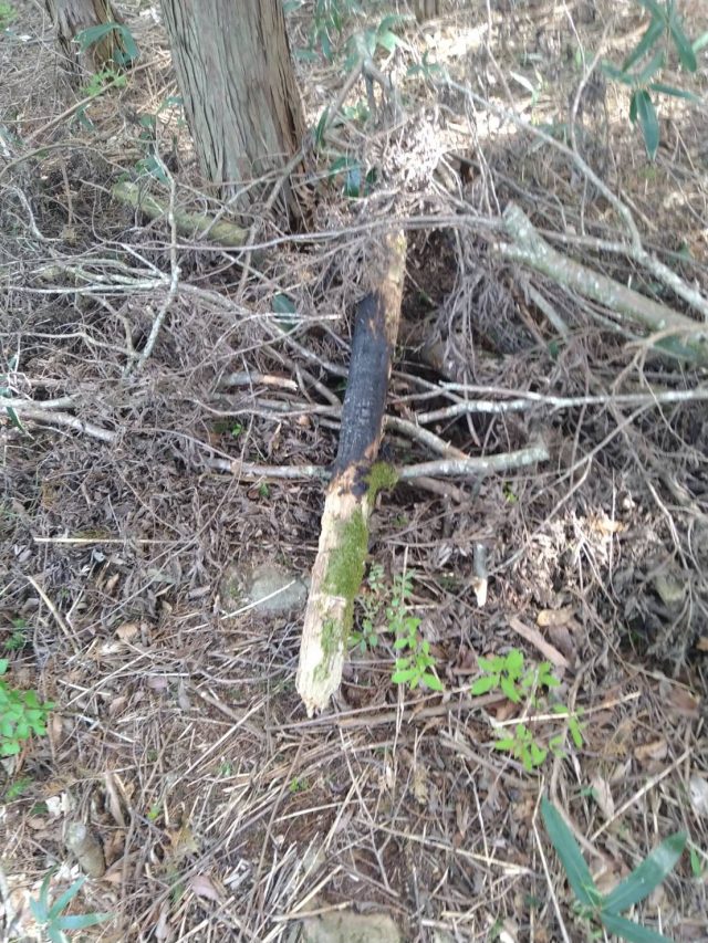 昨日サイトの清掃をしていたところ山の中に捨ててある木を見つけました。