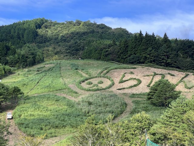 来年の干支も羅漢の文字の横にそろそろ完成します。草刈りだけでは大変で、面白くないので、幸、愛、ハートマークと草刈りアートで楽しんでます。らかんキャンプの思い出にどうぞ。