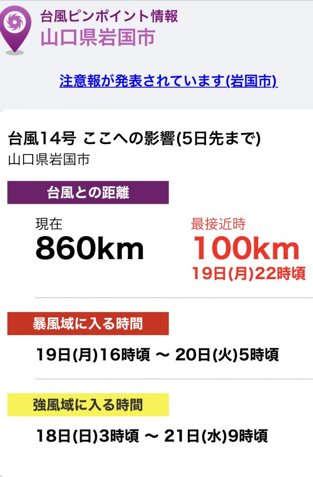 特に、ここより日本海側を通るようになった場合は風が強くなりますし注意しなければなりません。