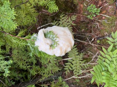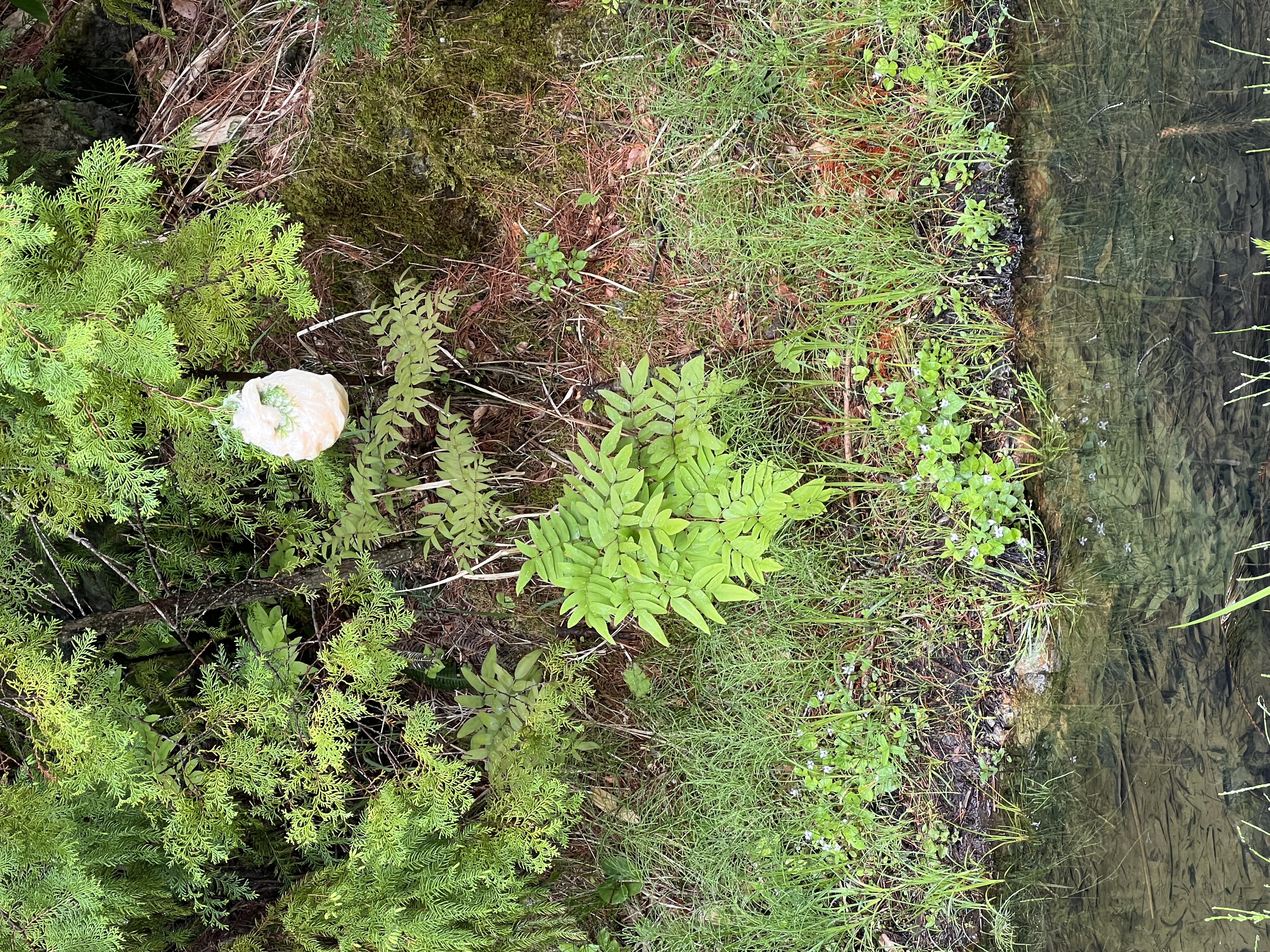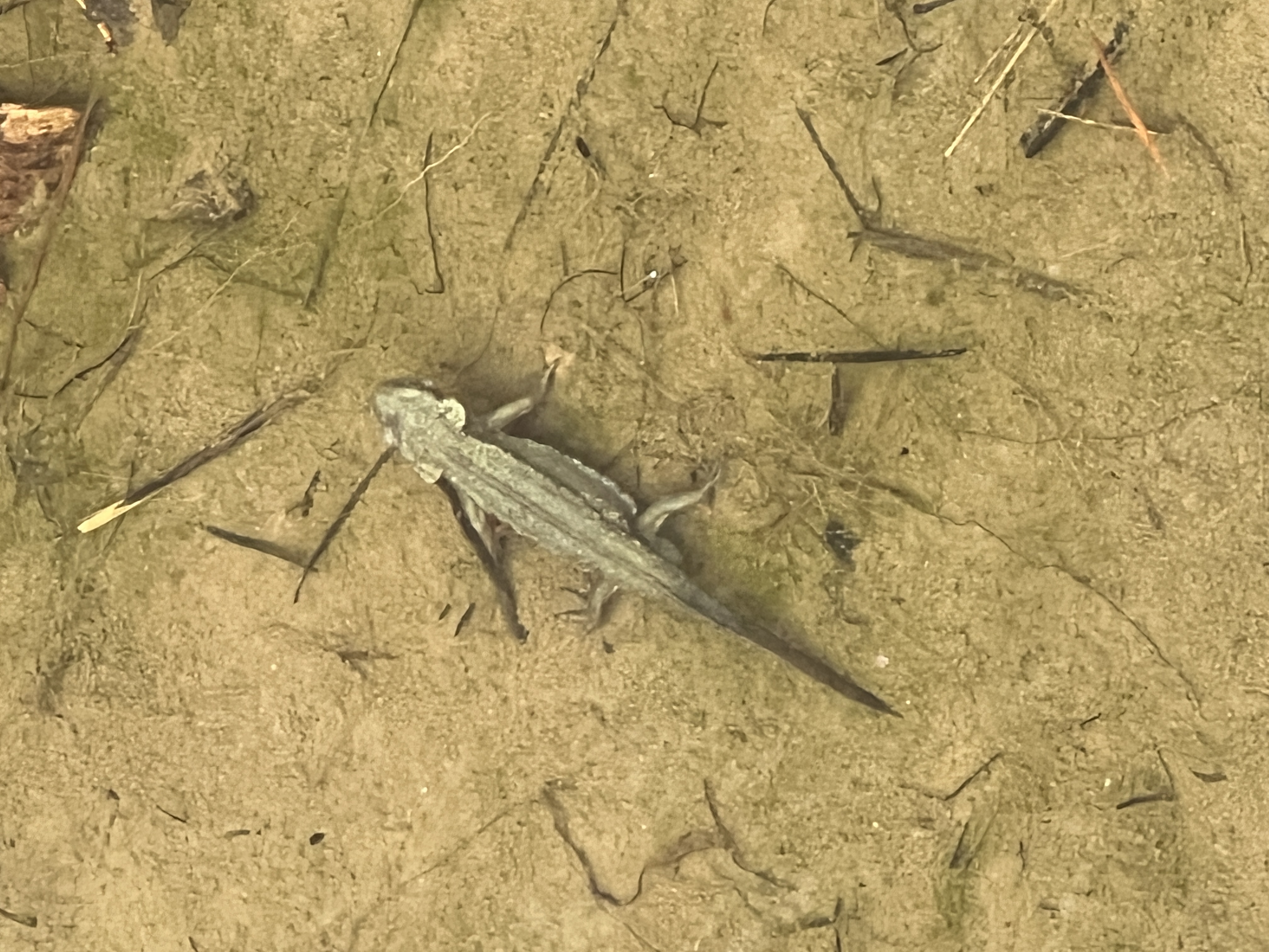 ヒンヤリとしたミストシャワーの中を散歩 今朝はモリアオガエルの産卵を発見!! いつもの天然ビオトープの場所に。 もちろん下には、、、、、 アカハライモリなど待ち受けています。この子は何という生物でしょうかね