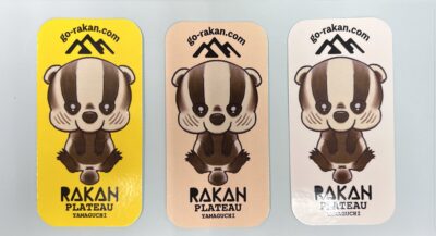 3色展開でかん太シールが完成いたしました。 らかん高原オートキャンプ場の中に住んでいるアナグマをモデルにイラストを描いてもらって作りました。 今週末から販売します。(1枚200円 3種類同時購入500円) スマホやキャンプギアに張ってください。
