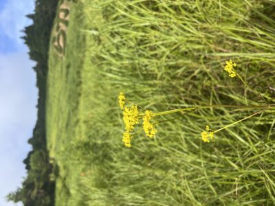 「女郎花(おみなえし)」です。秋の七草として知られていますが、ここらかん高原では7月頃から咲き始め、涼しい風に揺られながら、秋の訪れをいち早く知らせてくれています。