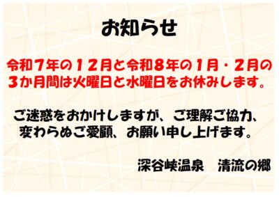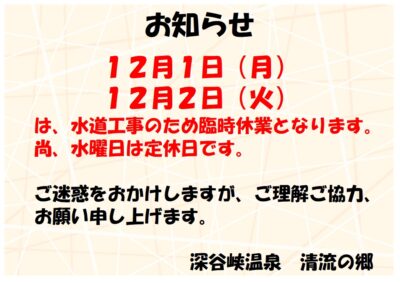 尚、下記は臨時休業と休館日変更のお知らせです。