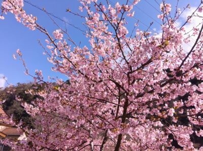 ピュアラインにしきの道の駅付近の河津桜が満開になっています。