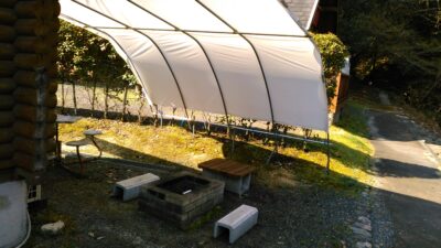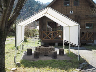 またコテージ横のBBQコンロの上には屋根が張ってありますので、