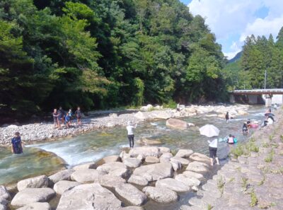 昨日からオオサンショウウオの研究者様が、コテージ前を流れる深谷川に来られてます。