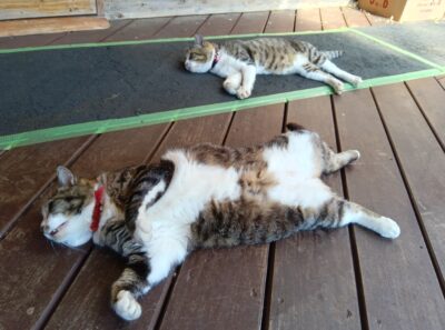 看板猫はあまりの暑さでほとんど仕事をしてません。