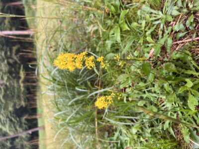 黄色く輝く花は アキノキリンソウ(秋の麒麟草)